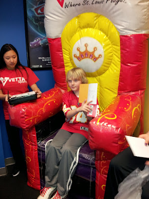 Taylor and I decorated the dining room for him to have a wonderful surprise to wake up to. Taylor got him a Minecraft paper building set, Daddy and I pre-ordered him the Pokedex he has been wanting, and the biggest surprise of all...a super sweet Mom from cub scouts gave us a huge bday party at Vetta sports! Now Blake gets to invite all of his friends to come and celebrate with him! This was the sweetest surprise to all of us! We wrapped up the invitations and he was thrilled to open that! We sang him "Happy Birthday" and let him blow out the candles on his iced honey bun for breakfast!